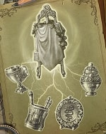 ディ=フィオーリの子供時代の物語が分かれば、絵に込められた話の筋を明らかにできて、そこに込められた魂を取り除けるのかしら?霊体の世界が動くのを感じるわ…。ジョバンニの父親は病に斃(たお)れたのね、薬で彼の病気が分かったのだわ。アルバレッロ、薬を入れる広口の入れ物よ、それを探してちょうだい。そうしたら、ディ=フィオーリの父親に何があったのか教えてあげられるわ。 |