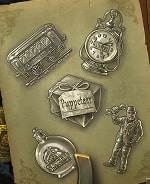 | Lamp with Shade | Smart Shoes | Resstaurant's Menu | Gold Handbag | Train Logo | Newspaper- Special Edition |