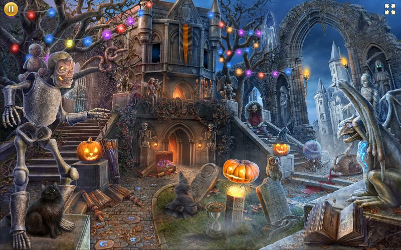 | The sinister backyard of Jack's Castle is decorated with colourful garlands and funny Halloween mannequins; while dubious-looking delicacies smell very tasty. What's this? Sophisticated bait of the promise of a fun and safe Halloween? |