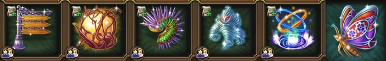 | Twisted Direction Sign | Ball of Light | Grippy Caterpillar | Foggy Silhouette | Ritual Circle | Scout Butterfly |