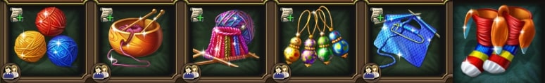 モナミ、バレリーに靴下編みを教えるために必要なモノは全部揃ったわ。でも編み物には忍耐力と集中力が要求されるのに、バレリーってとっても落ち着きがないでしょ。もしかするとアーティファクトがあれば、習い事に集中できるんじゃないかしら?お願い、いくつか貸してちょうだい。 | |