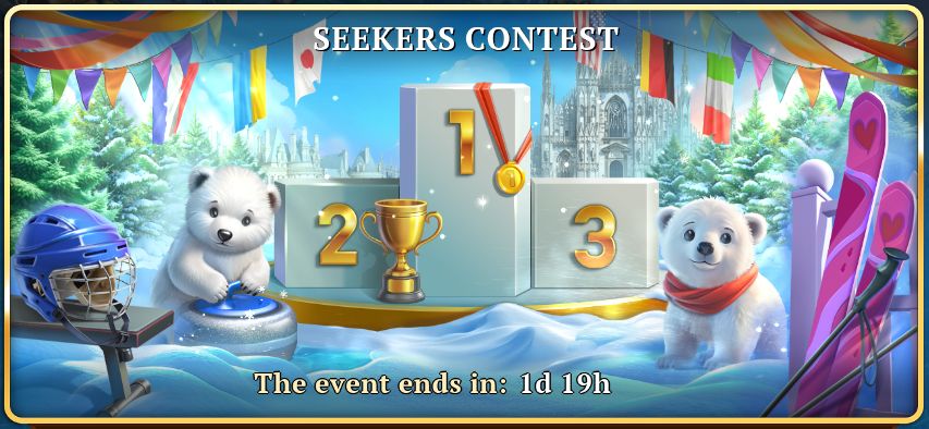 Seekers Contest シーカーズ・コンテスト Collect ice badges to help Icy build the winners' podium for the winter games and become one of the champions! できるだけたくさん氷バッジを集めて、アイシーがウインタースポーツの表彰台を作るのを手伝おう、チャンピオンの一人になれちゃうぞ! = Start Time = NY - 3:00 AM (Summer 4:00 AM) UTC - 8:00AM London - 8:00 AM (Summer 9:00 AM) Paris, Berlin - 9:00 AM (Summer 10:00 AM) Moscow - 11:00 AM Beijing - 4:00 PM Tokyo - 5:00 PM |